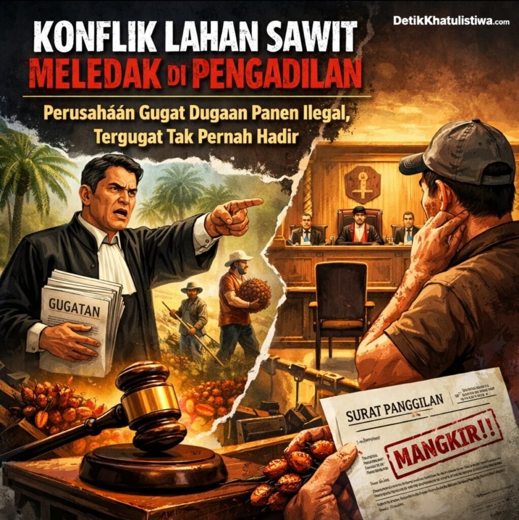 Pelaihari, DetikKhatulistiwa.com — Konflik lahan perkebunan kelapa sawit kembali mencuat dan kini bergulir panas di ruang sidang Pengadilan Negeri Pelaihari. Sebuah gugatan perdata yang diajukan oleh perusahaan perkebunan PT Pola Kahuripan Inti Sawit terhadap seorang warga bernama Sdr. Darna tengah menjadi perhatian, setelah perkara tersebut memasuki tahap penting dalam proses persidangan.