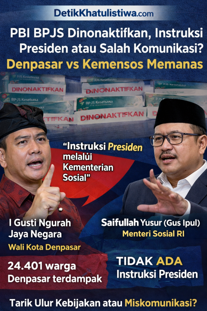 Sorotan tajam muncul setelah Wali Kota Denpasar, I Gusti Ngurah Jaya Negara, menyebut bahwa penonaktifan PBI BPJS merupakan bagian dari “instruksi Presiden melalui Kementerian Sosial” untuk menonaktifkan peserta pada kategori Desil 6–10.