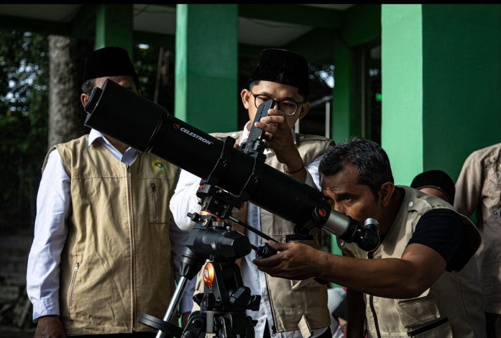 - Hisab, yaitu perhitungan astronomi untuk menentukan posisi hilal secara matematis.